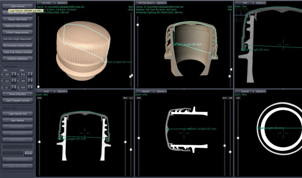 VoluMedic Standalone is a quick and easy to use viewer for volumetric data from DICOM and Fraunhofer EZRT (REK). It offers interactive high quality volume rendering and a range of measurement tools. Because it relies solely on the CPU, it can be easily virtualized and cloud deployed. Customization of the Viewer is possible upon client request (see software development services).